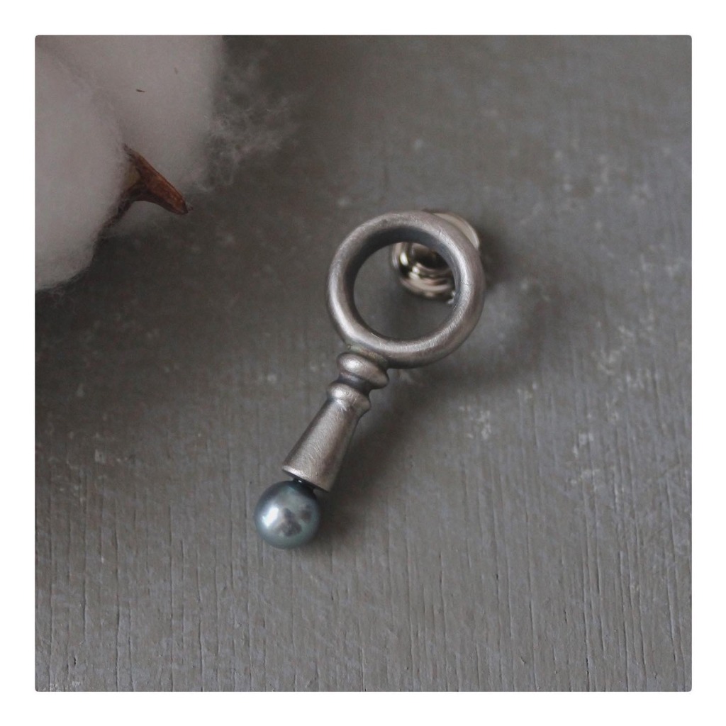 その名の通り懐中時計の鍵をモチーフに黒真珠と組み合わせたブローチです。